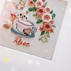 This embroidery kit features charming designs of cats and teacups in soothing colors, adding a touch of warmth and elegance to your home.