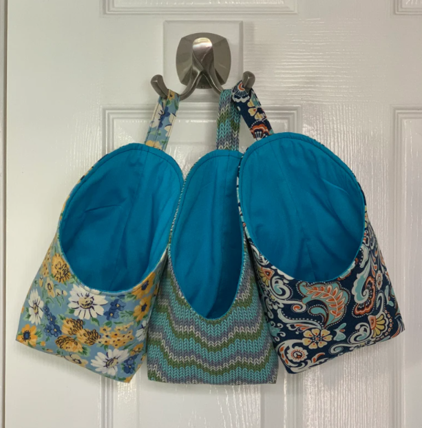 They're perfect to hold whatever bits & bobs that you have. Create a batch for your kitchen, sewing room, car, garage, bathroom, bedrooms, etc. to hold all of your favorite tools and items. Hang these from a pegboard or Command Strips with a sewn-on loop. Or add a snap or velcro on one side of the loop so you can easily hang or remove from difficult areas like your car headrest or shower pole.