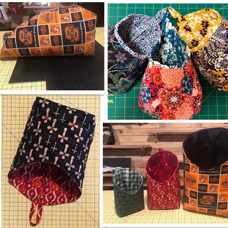Try a variety of materials to make them flexible or stiff. Upholstery & outdoor fabrics, vinyl, faux leather all add substance as well as interfacings like fusible foam and fusible fleece.